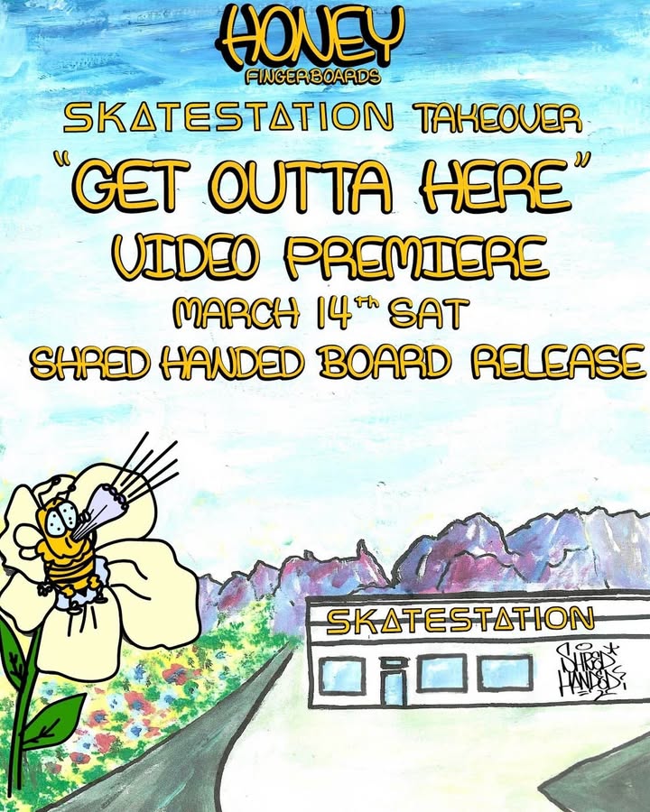 This month for the Second Saturday Skatestation event the Honey Fingerboards team will be announcing their new team, showing their video project they've been working, and launching new decks. The event will begin at 3pm and run until 8pm.