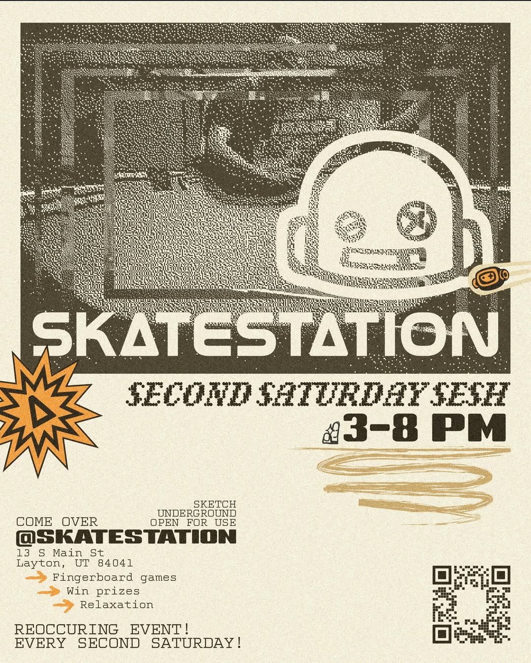 Every month on the second Saturday, come to Skatestation for games of SKATE, free product tosses, community mingling, and other fun games! The event begins at 3pm and ends at 8pm. The schedule of events varies, but be sure to check our instagram for the most frequent updates!